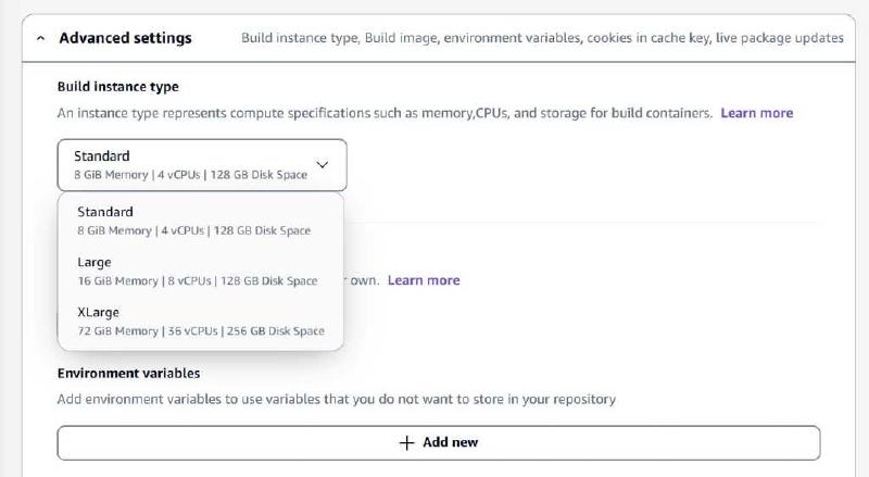 也可查看一下 Build Instance type,因為 AWS Amplify 的 Build 是按分鐘收費,如果你的 App 需要一個更高效能環境,請選擇一個合適的以減少 Build 時間。