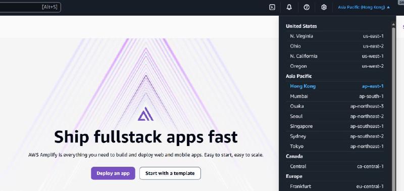 可以選擇一個鄰近你/客戶的 Region,我會選擇香港 (ap-east-1)。然後選擇 “Deploy an app”。